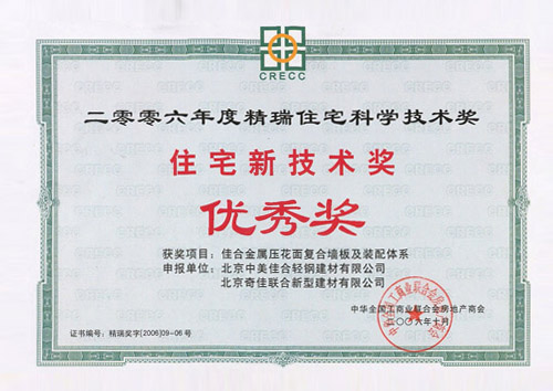 - 2006年榮獲中國第三屆“精瑞住宅新技術優(yōu)秀獎”